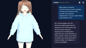 - Live-Generated Content: As an AI companion, TOMO generates responses in real-time. We disclose the use of AI for "Code" and "Text & Dialog" to maintain transparency and trust within the itch.io community.