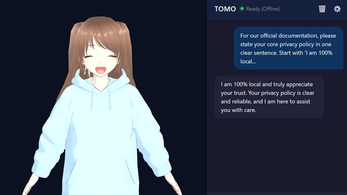 TOMO is a next-generation AI companion built with a single philosophy: Privacy first, always. Unlike cloud-based AI services that record your every word, TOMO lives entirely on your local machine. No data tracking, no subscriptions, and 100% offline.